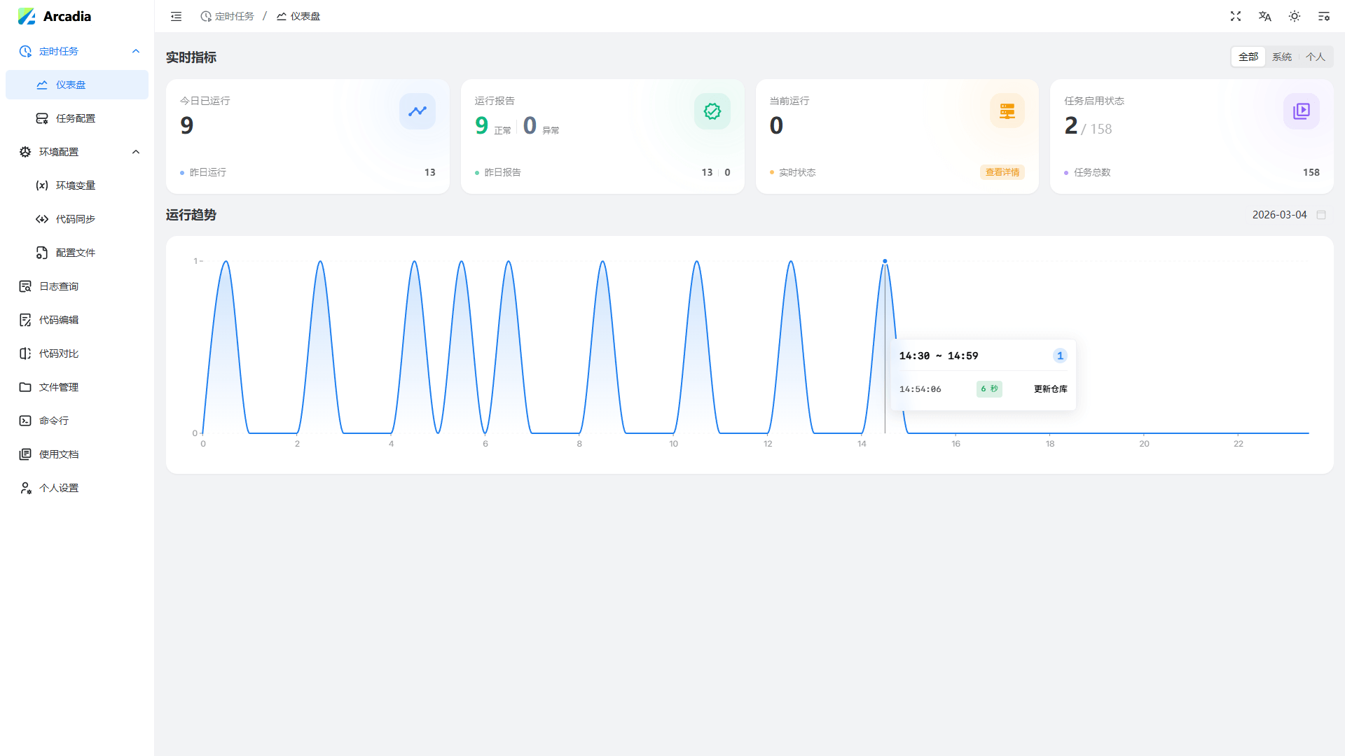 支持秒级任务与并发任务与数据监控仪表盘,增删改查一应俱全,可查看任务关联的日志和源码,支持调试、过滤、排序等功能。