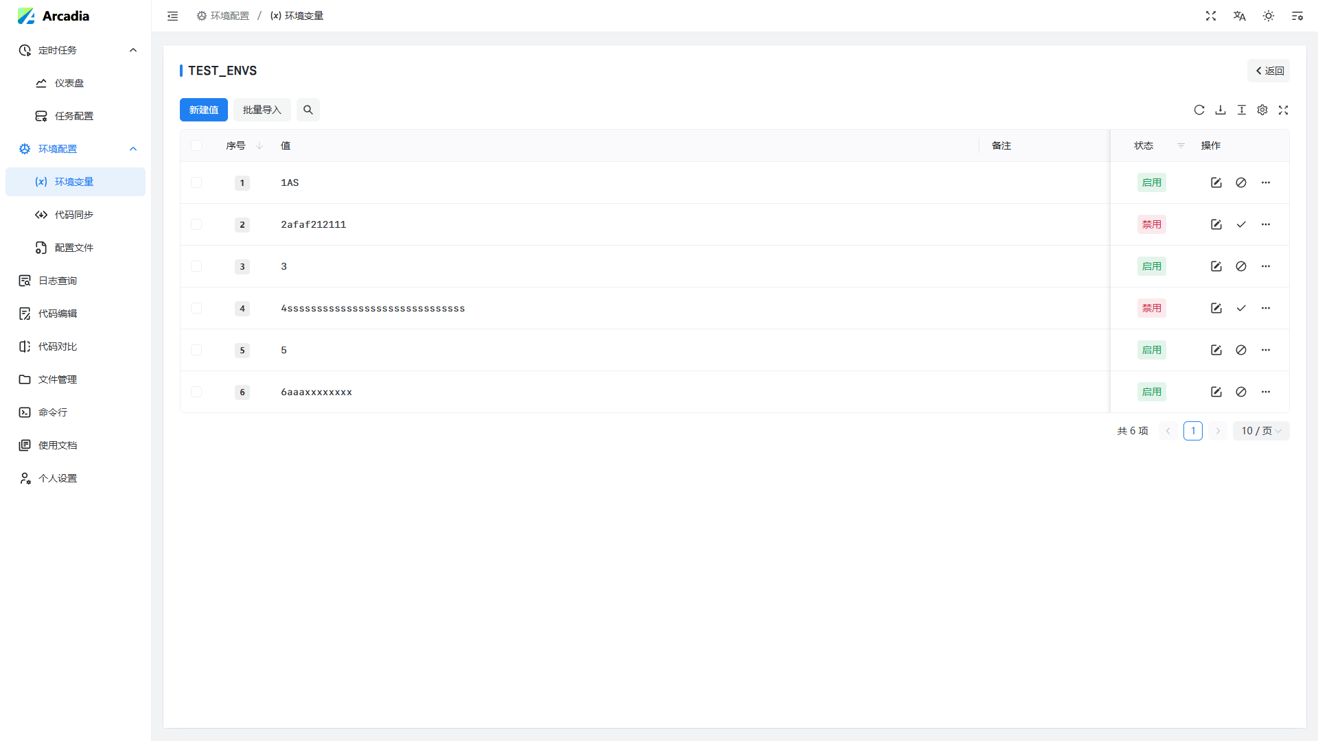 通过数据表格页面管理底层环境变量,增删改查一应俱全,支持变量聚合、编排,支持排序。